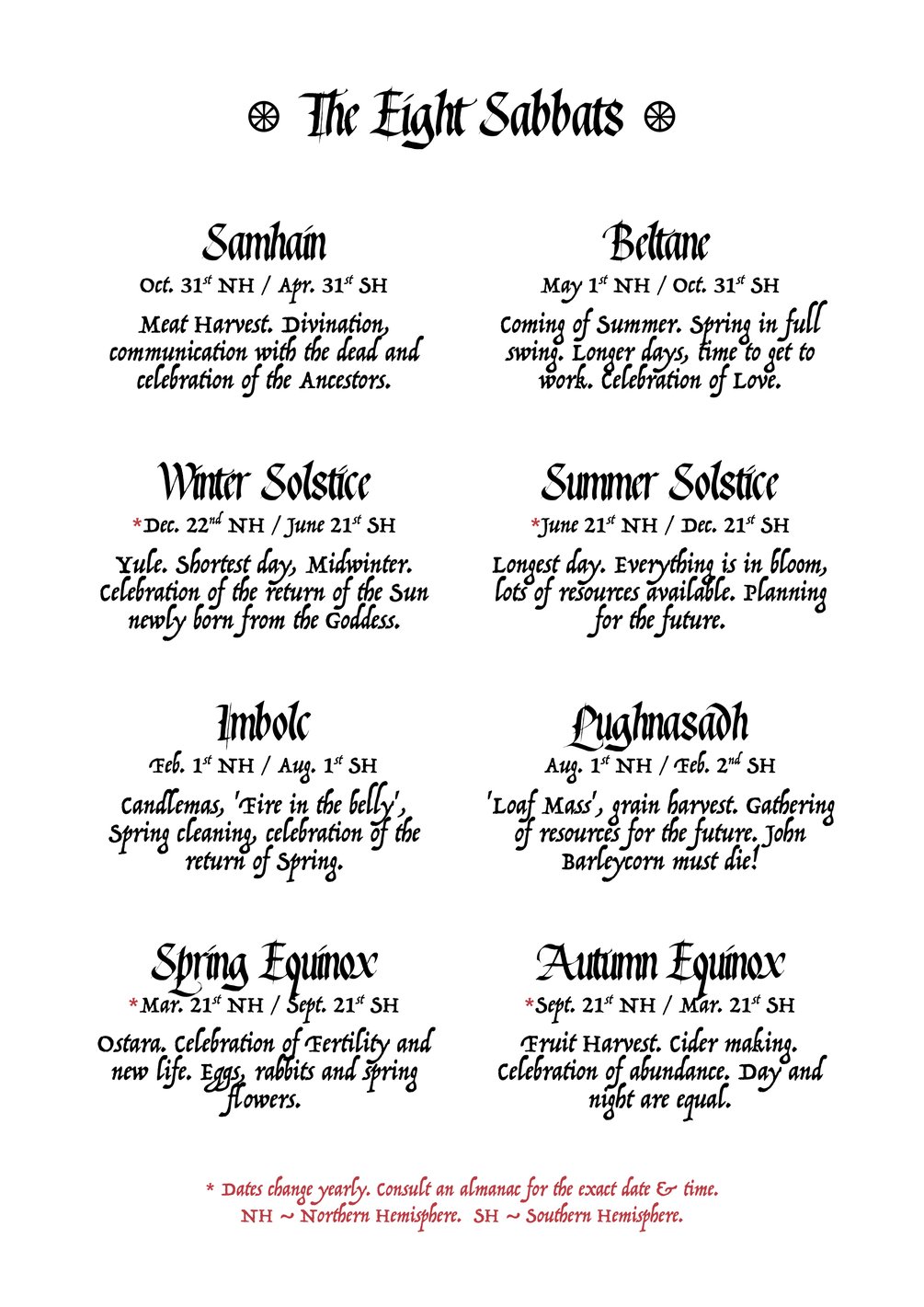 Eight Sabbats - Wiccan holiday correspondences pdf - A4